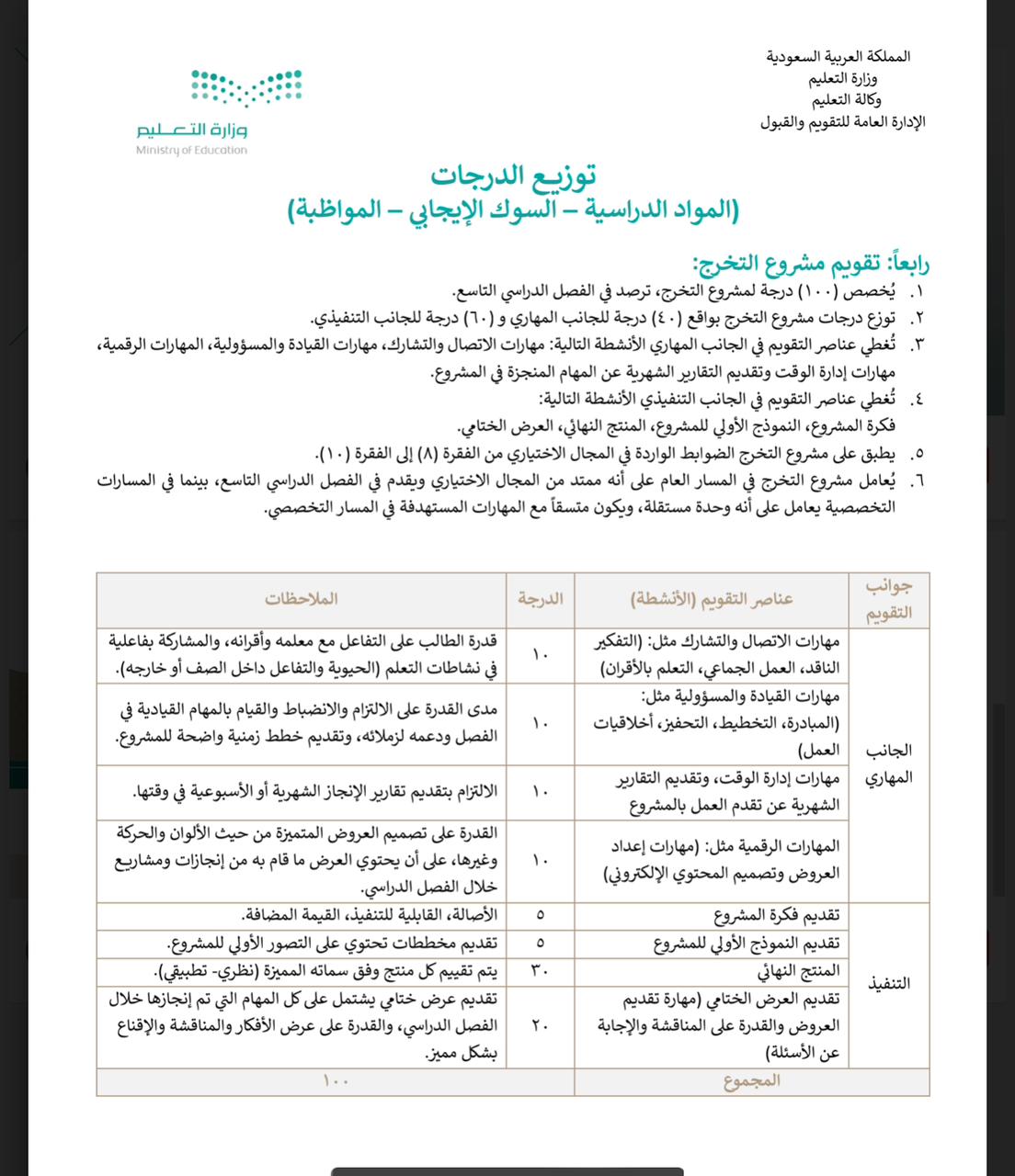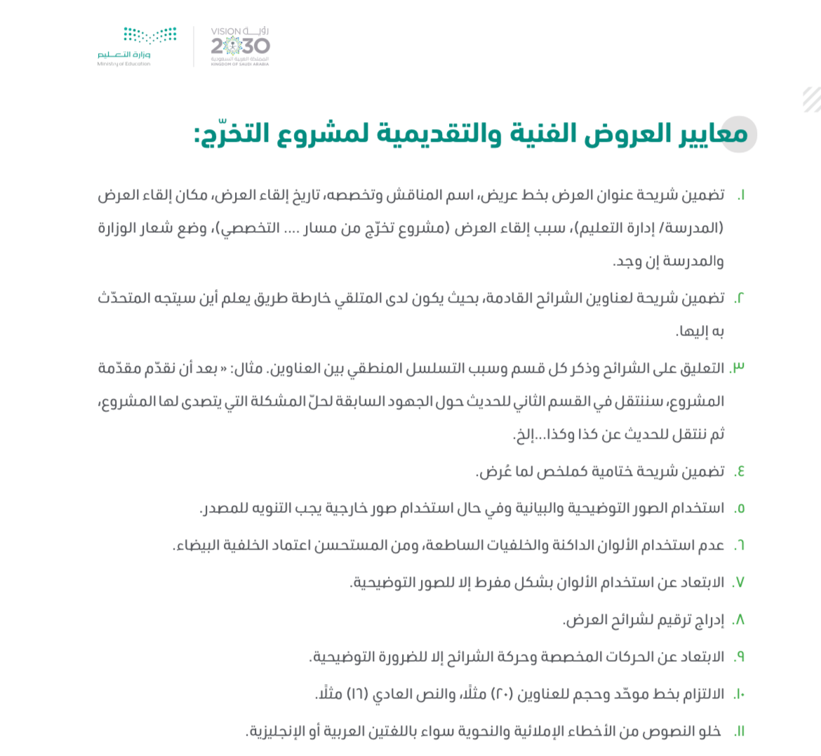 معايير العروض الفنية والتقديمية لمشروع التخرج